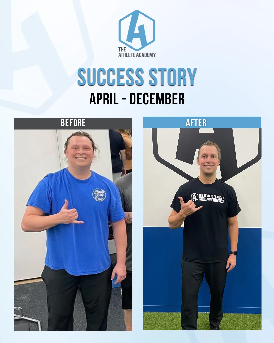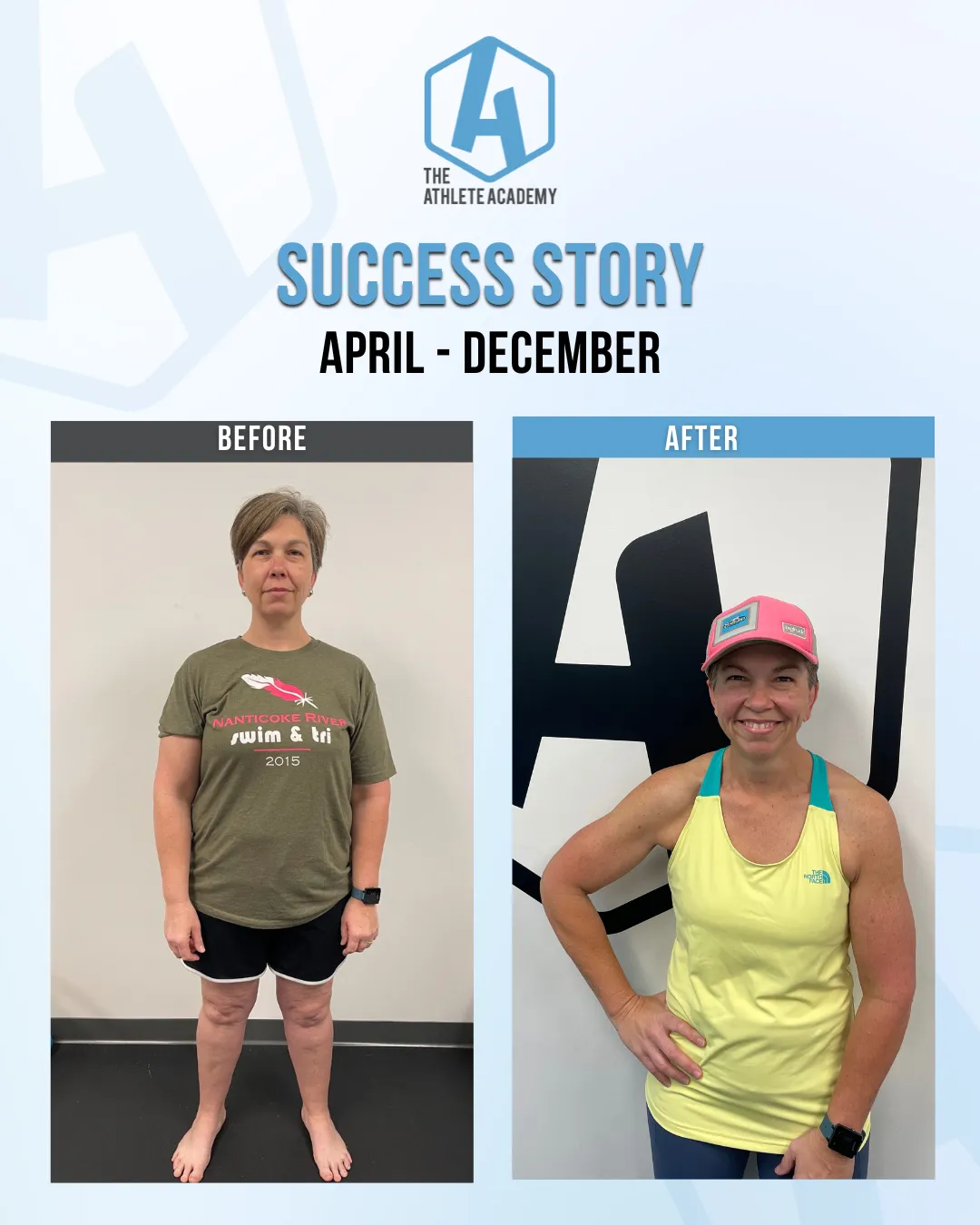 At The Athlete Academy, we keep you accountable and focused on your fitness journey. You set your goals, and we work 1-1 with you to ensure you reach them, providing the support and motivation you need every step of the way.